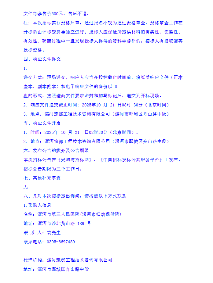 【漯河市第三人民医院】河南省漯河市第三人民医院(漯河市妇幼保健院)2025年叶酸采购项目