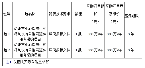 1、项目名称:益阳市中心医院中药精制饮片采购及延伸服务采购项目
