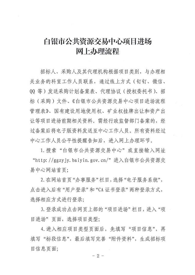 【白银】甘肃省白银市公共资源交易中心关于疫情防控期间项目进场实行网上办理的通知