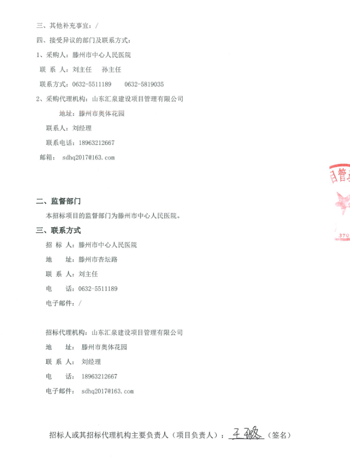 所属项目:山东省枣庄市滕州市中心人民医院院