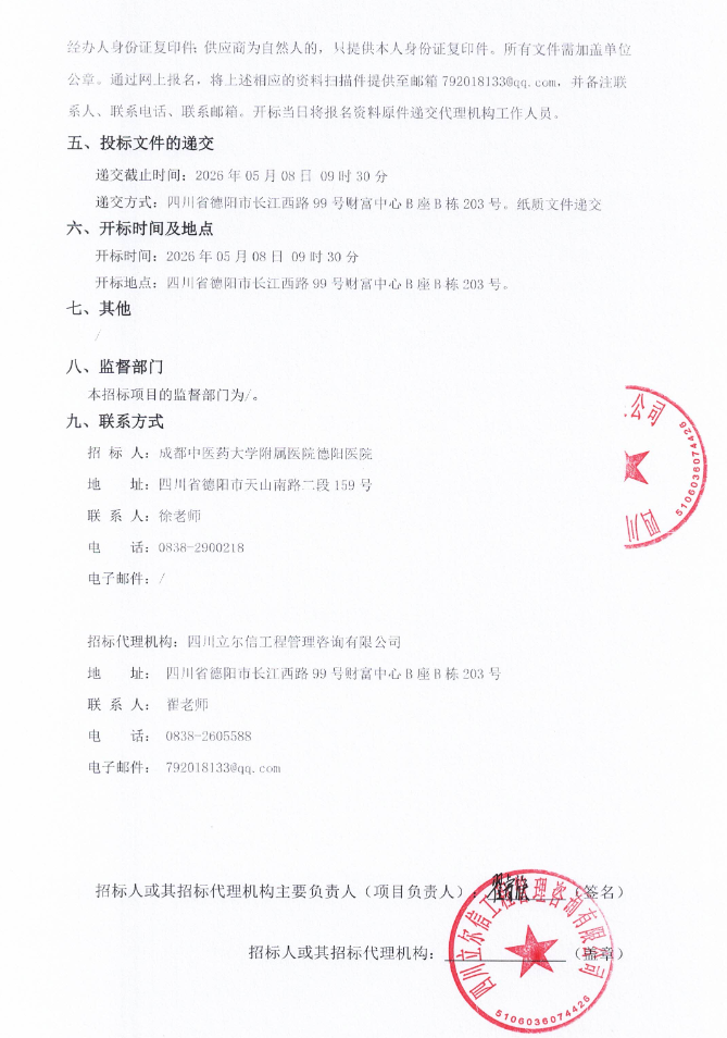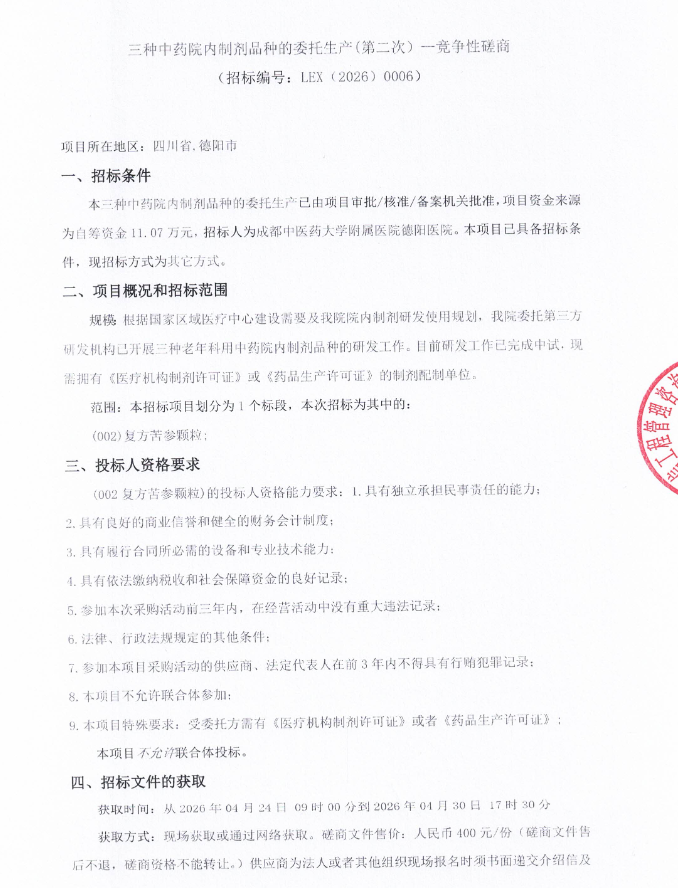 【成都中医药大学附属医院德阳医院】四川省成都中医药大学附属医院德阳医院三种中药院内制剂品种的委托生产(第二次)--竞争性磋商