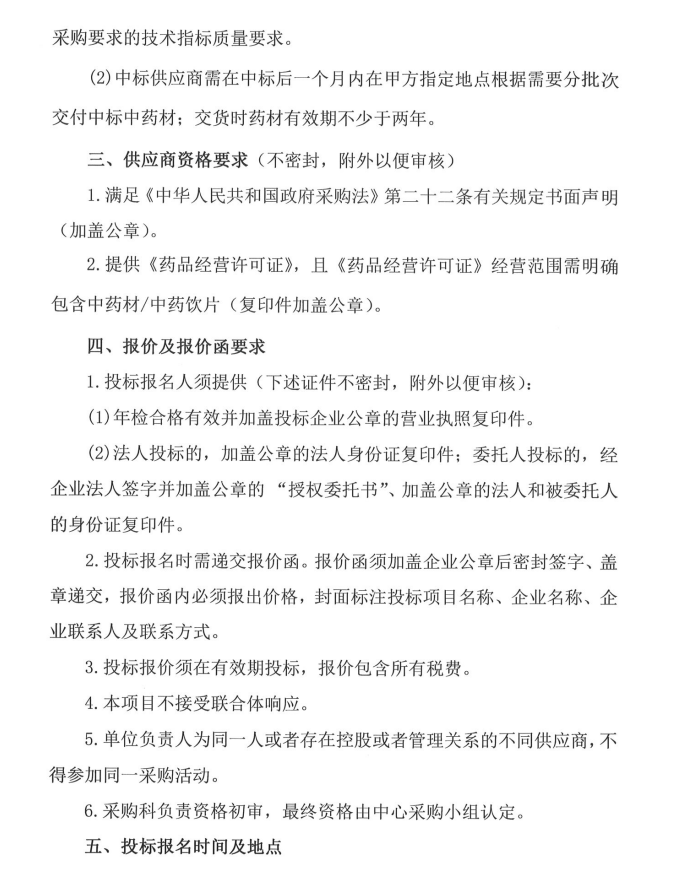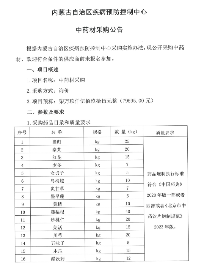 【内蒙古自治区疾病预防控制中心】内蒙古自治区疾病预防控制中心中药材采购公告