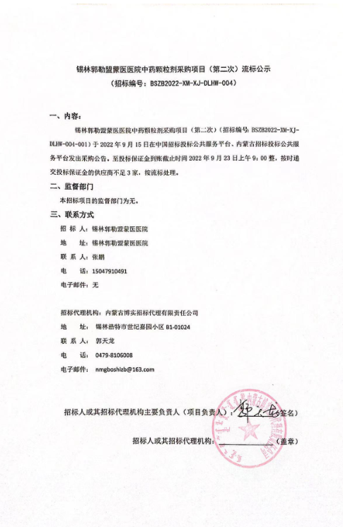 【内蒙古自治区锡林郭勒盟蒙医医院】中药颗粒剂采购项目(第二次)流标公示