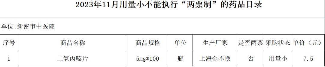 【郑州市新密市中医院】河南省郑州市新密市中医院2023年11月用量小不能执行“两票制”的药品目录