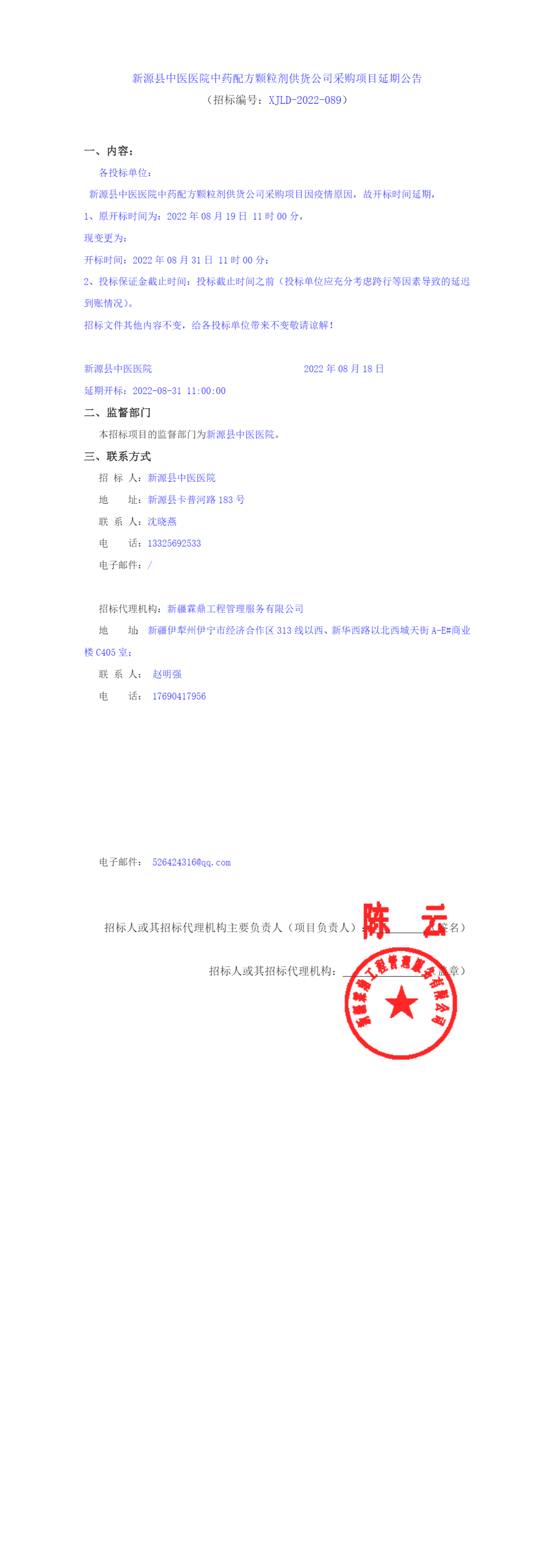 【新源县中医医院】新源县中医医院中药配方颗粒剂供货公司采购项目延期公告