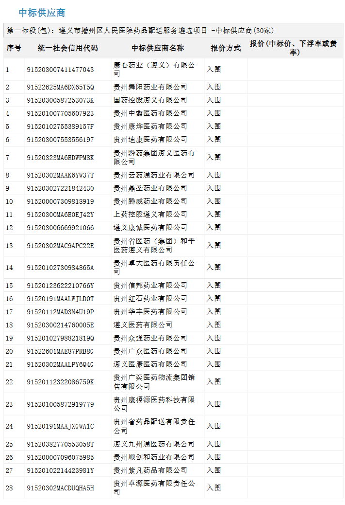 【遵义市播州区人民医院】贵州省遵义市播州区人民医院药品配送服务遴选项目更正公告