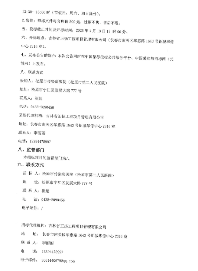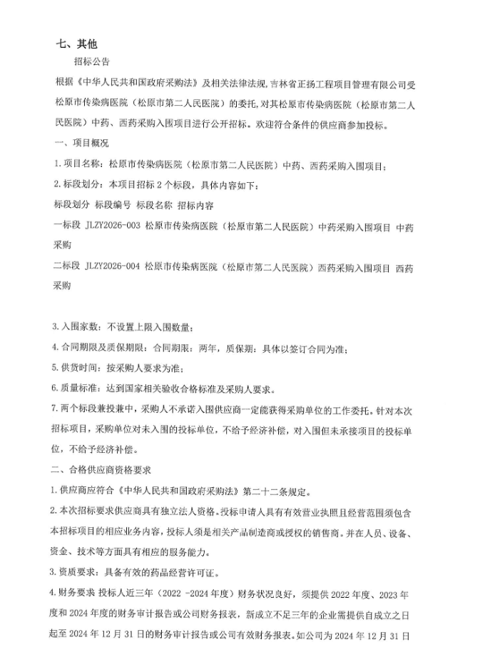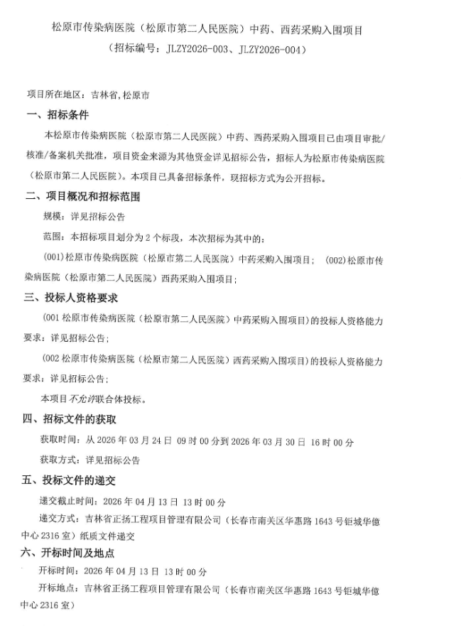 【松原市传染病医院】吉林省松原市传染病医院(松原市第二人民医院)中药、西药采购入围项目