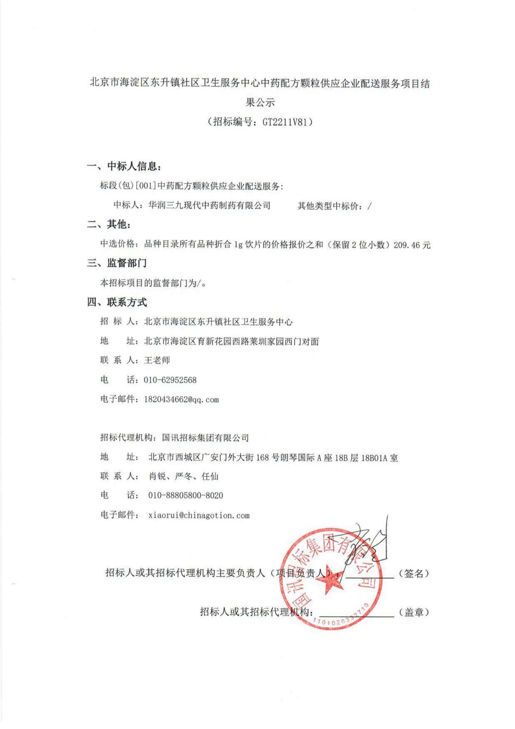 【海淀区东升镇社区卫生服务中心】海淀区东升镇社区卫生服务中心中药配方颗粒供应企业配送服务项目结果