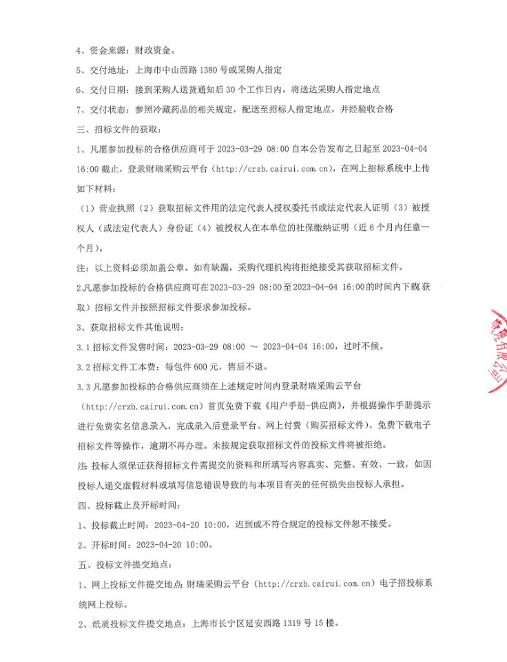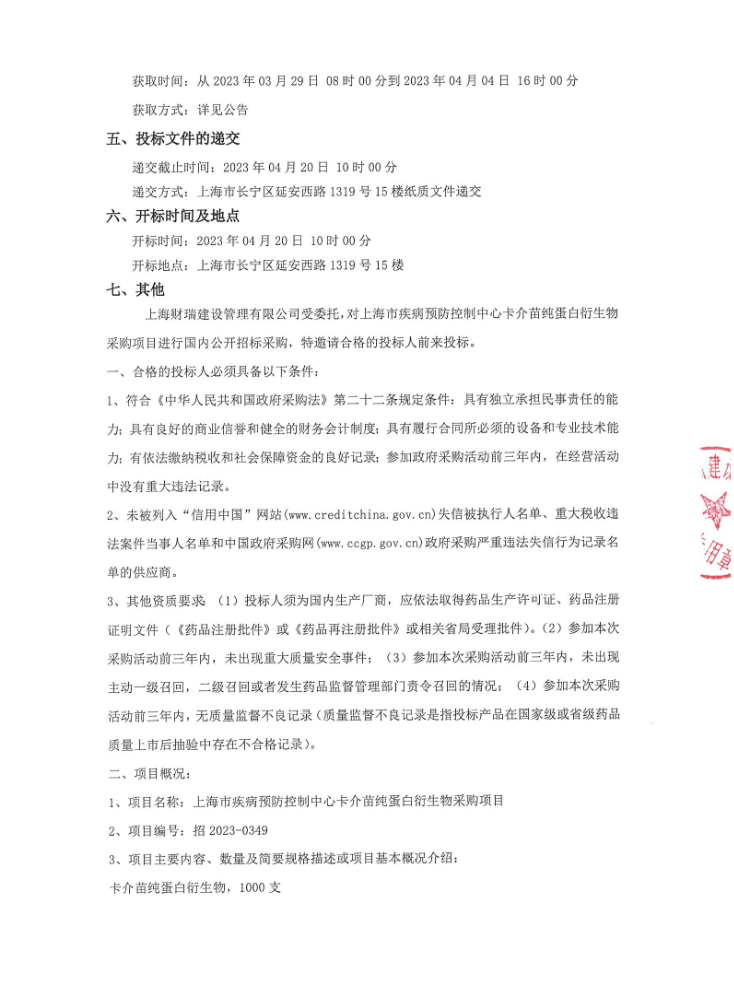 【上海市疾病预防控制中心】上海市疾病预防控制中心卡介苗纯蛋白衍生物采购项目(20230328)