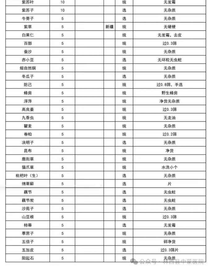 我院中药质量验收小组进行验收,验收标准以报价表上所标注的为准。发现所供药品不符合验收标准的将所有药品退回供货企业,一切费用由企业自行承担。