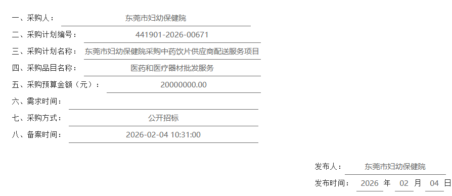 【东莞市妇幼保健院】广东省东莞市妇幼保健院采购中药饮片供应商配送服务项目