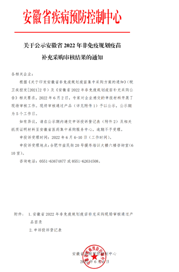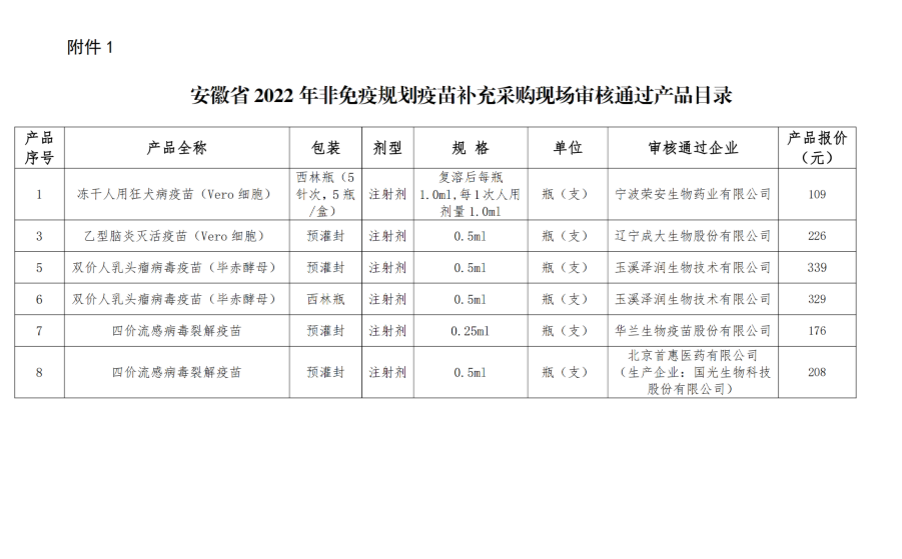 【安徽】安徽省医药集中采购平台〔转〕关于公示安徽省2022年非免疫规划疫苗补充采购审核结果的通知