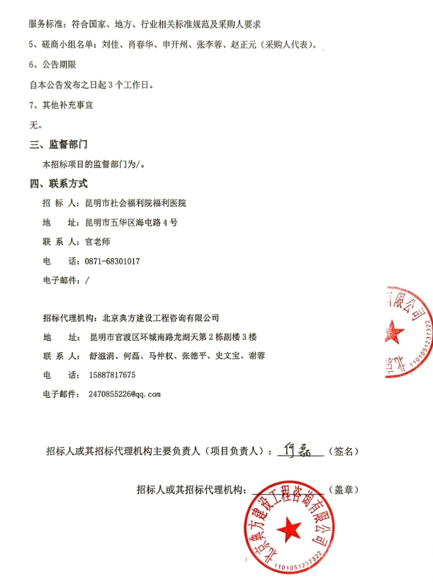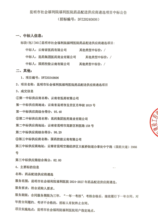 【昆明市社会福利院福利医院】云南省昆明市社会福利院福利医院药品配送供应商遴选项目中标公告