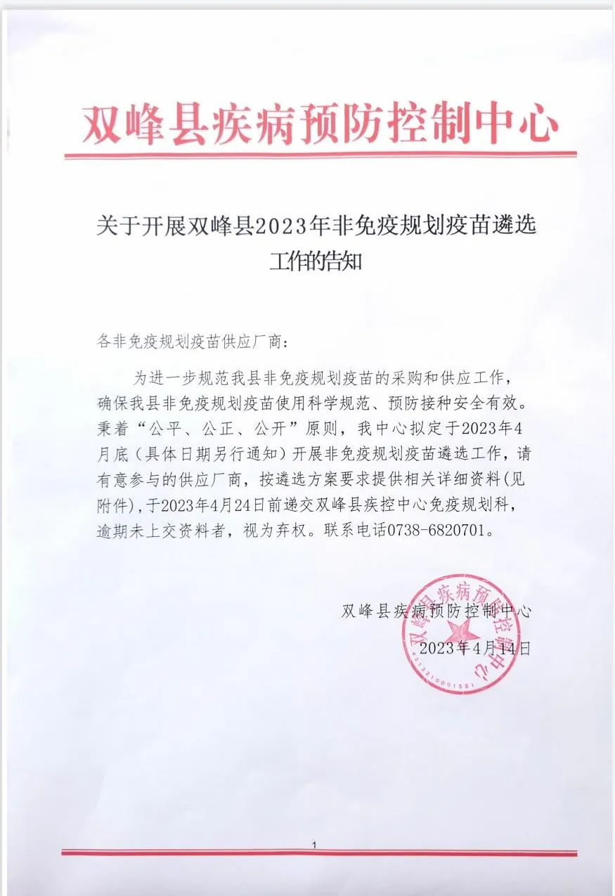 【娄底】关于开展双峰县2023年非免疫规划疫苗遴选工作的告知