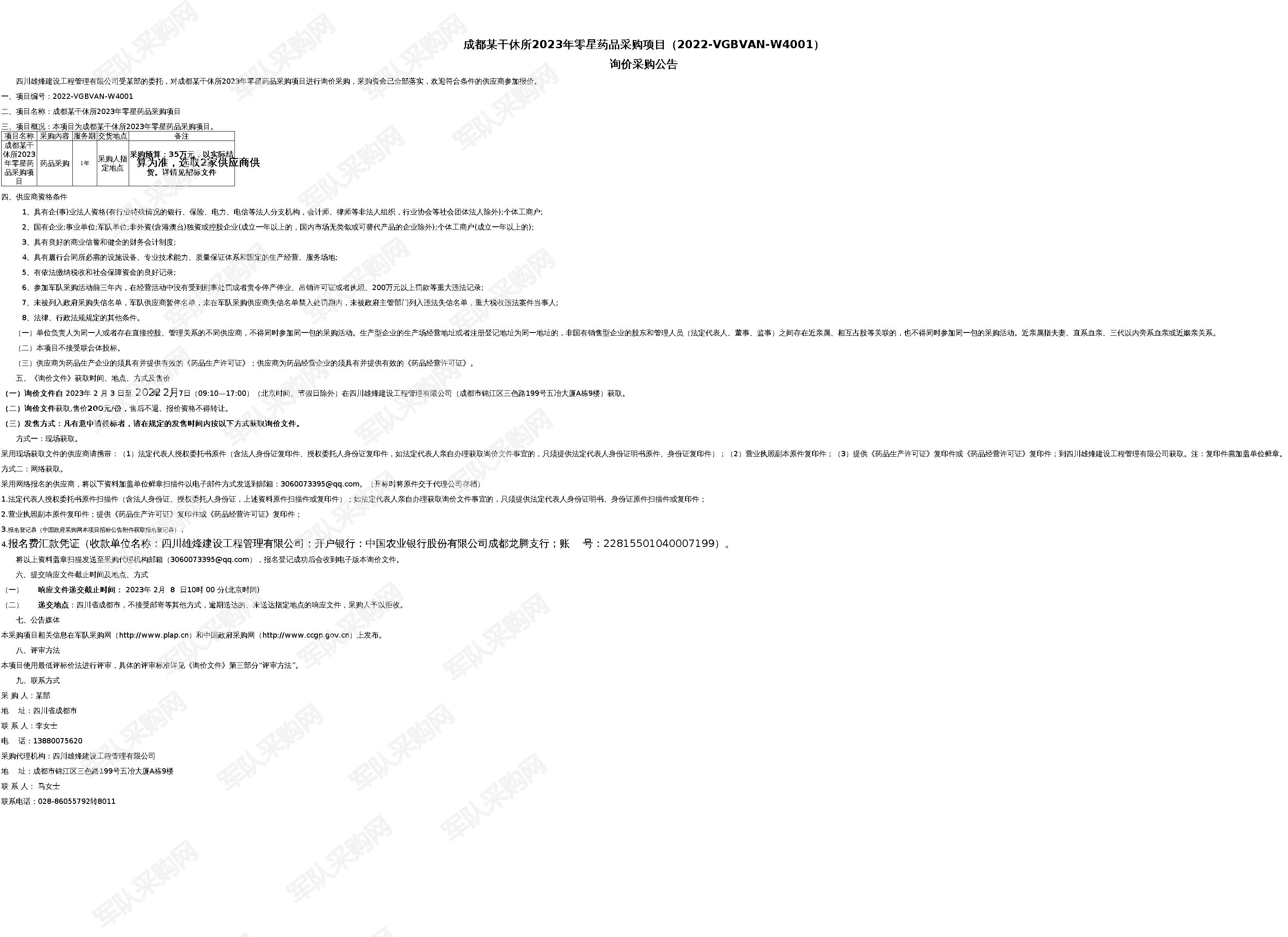 【军队采购】军队采购网成都某干休所2023年零星药品采购项目询价采购公告(2022-VGBVAN-W4001)