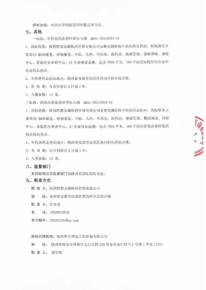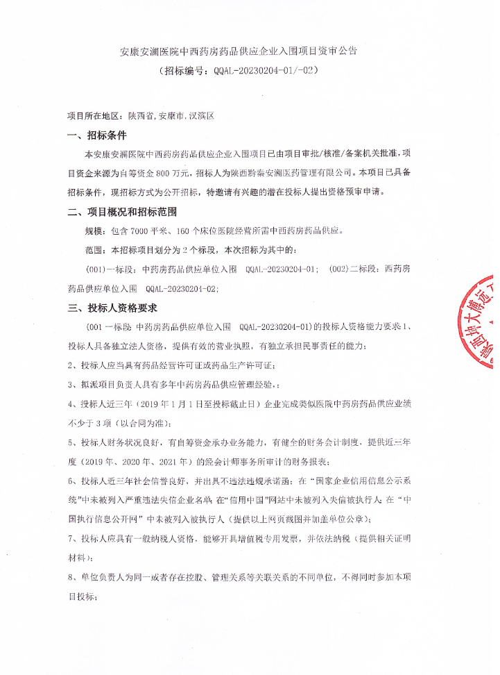 【安康市汉滨区安康安澜医院】陕西省安康市汉滨区安康安澜医院中西药房药品供应企业入围项目资审公告