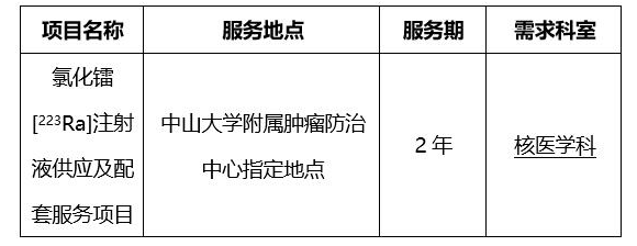 【广东省广州市中山大学肿瘤防治中心】核医学科氯化镭〔223Ra〕注射液采购项目调研公告