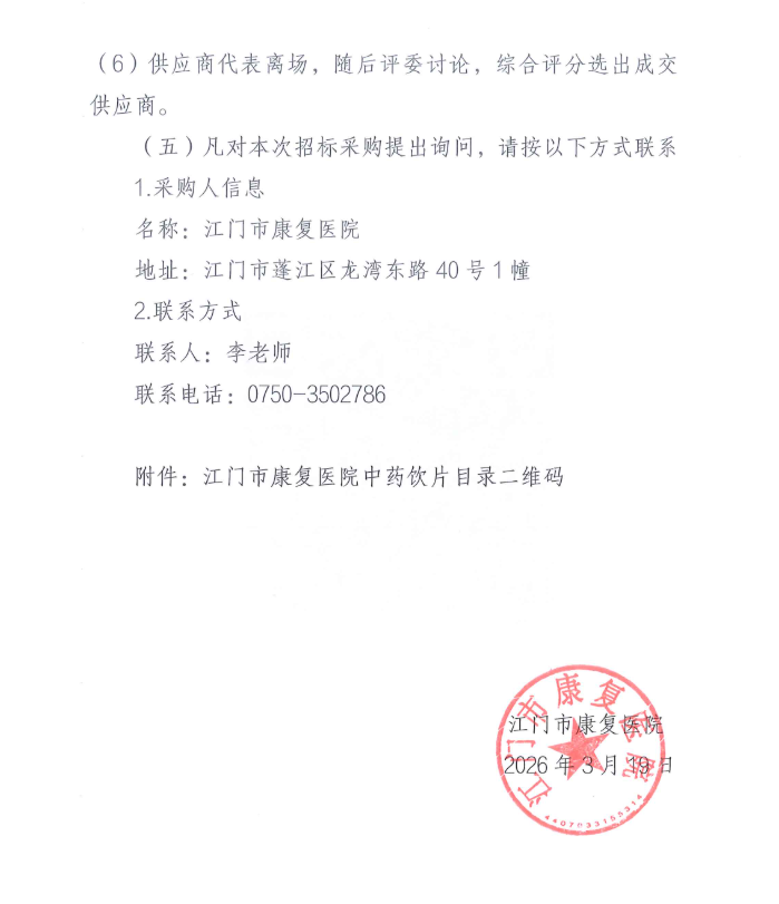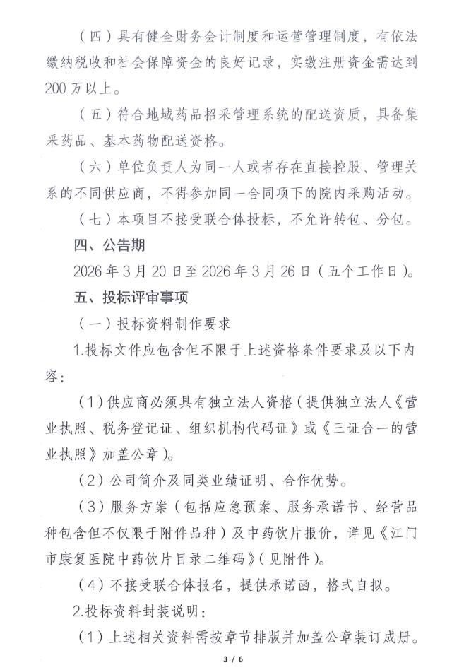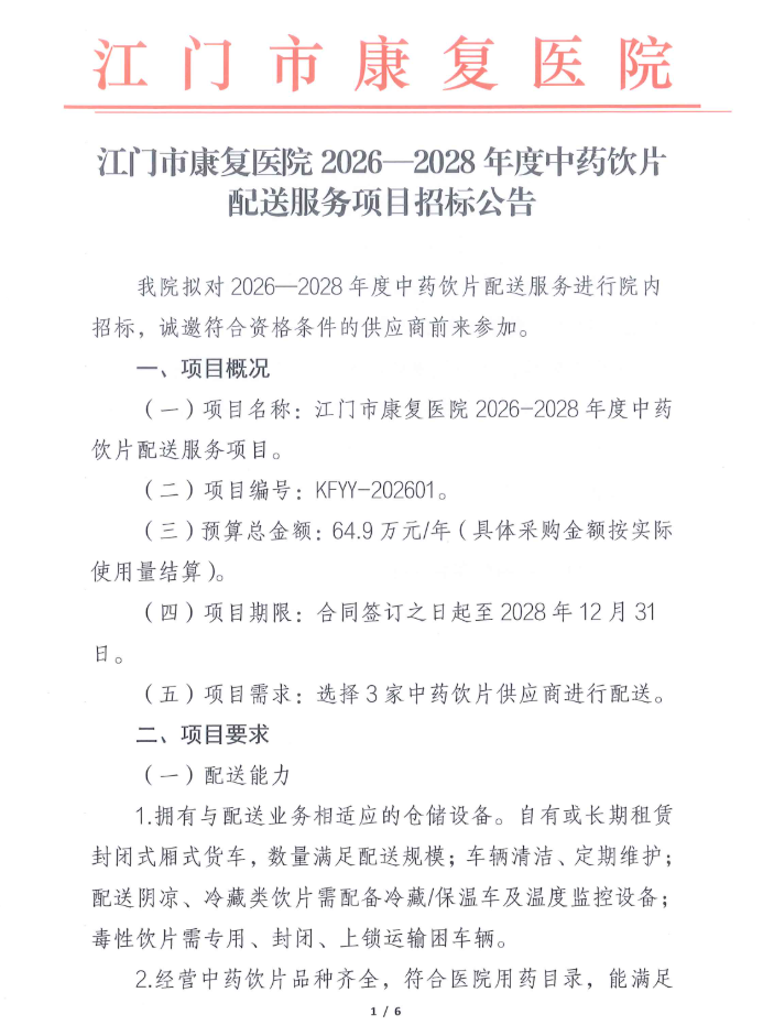 【江门市康复医院】广东省江门市康复医院2026-2028年度中药饮片配送服务项目招标公告