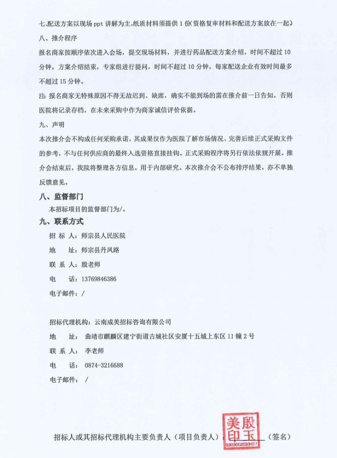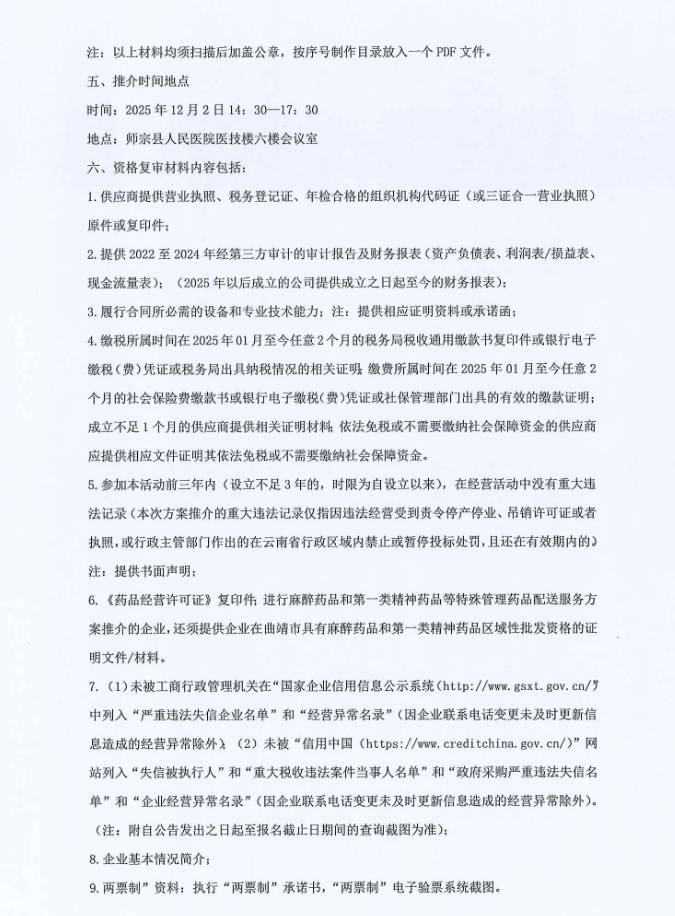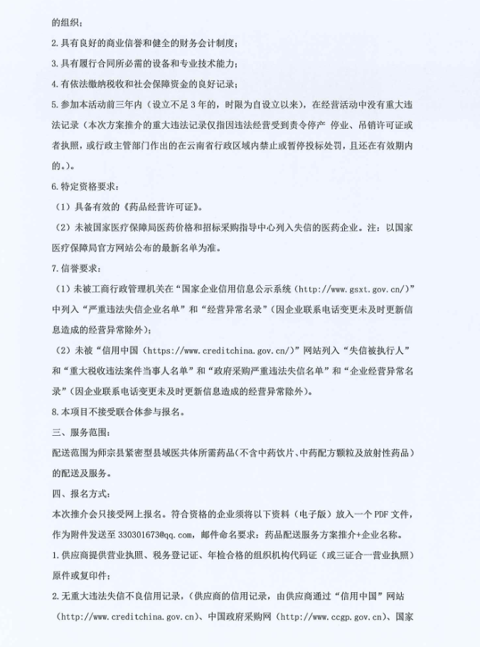 【曲靖市师宗县人民医院】云南省曲靖市师宗县紧密型县域医共体(师宗县人民医院)药品配送服务方案推介会公告