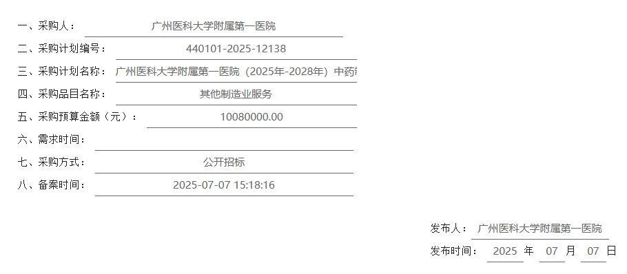 【广州医科大学附属第一医院】广东省广州医科大学附属第一医院(2025年-2028年)中药制剂委托配制服务项目
