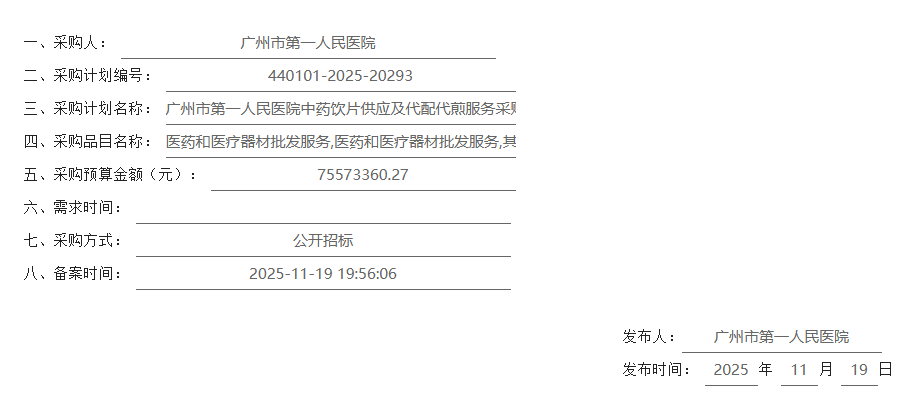 【广州市第一人民医院】广东省广州市第一人民医院中药饮片供应及代配代煎服务采购项目