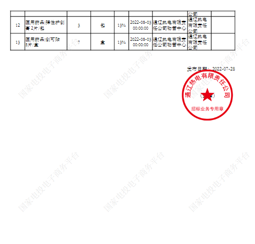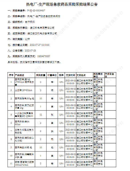 【热电厂】热电厂-生产现场急救药品采购结果公告