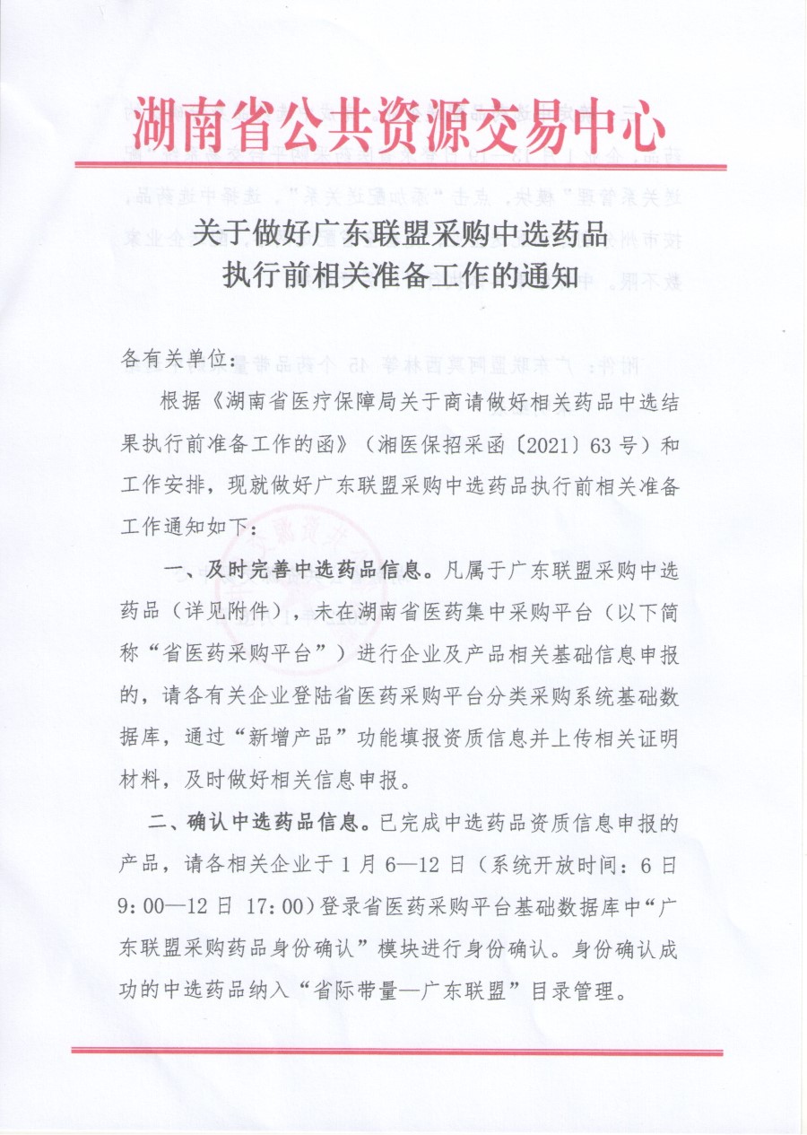 【湖南】湖南省关于做好广东联盟采购中选药品执行前相关准备工作的通知
