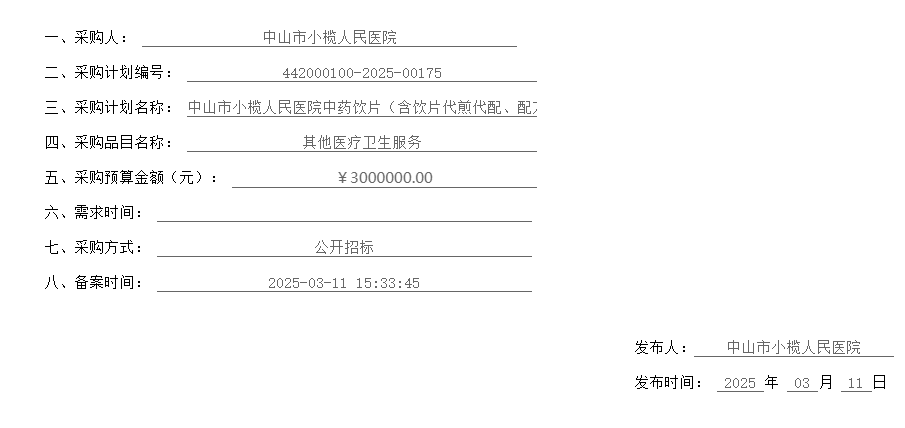 【中山市小榄人民医院】广东省中山市小榄人民医院中药饮片(含饮片代煎代配、配方颗粒调剂)供应服务采购项目(三次)