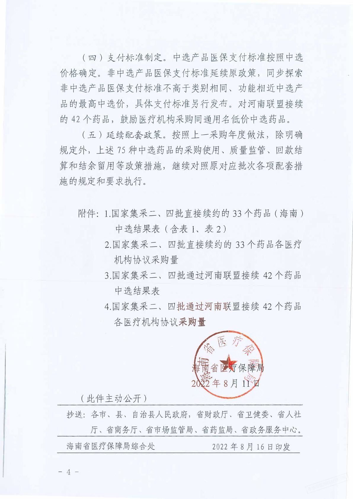 【海南】海南省医疗保障局关于做好我省第二批国家集采第三采购年度和第四批国家集采第二采购年度任务量返还和使用工作的通知