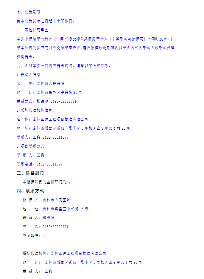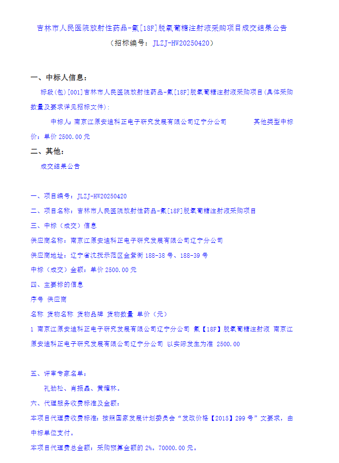 【吉林市人民医院】吉林省吉林市人民医院放射性药品-氟[18F]脱氧葡糖注射液采购项目成交结果公告