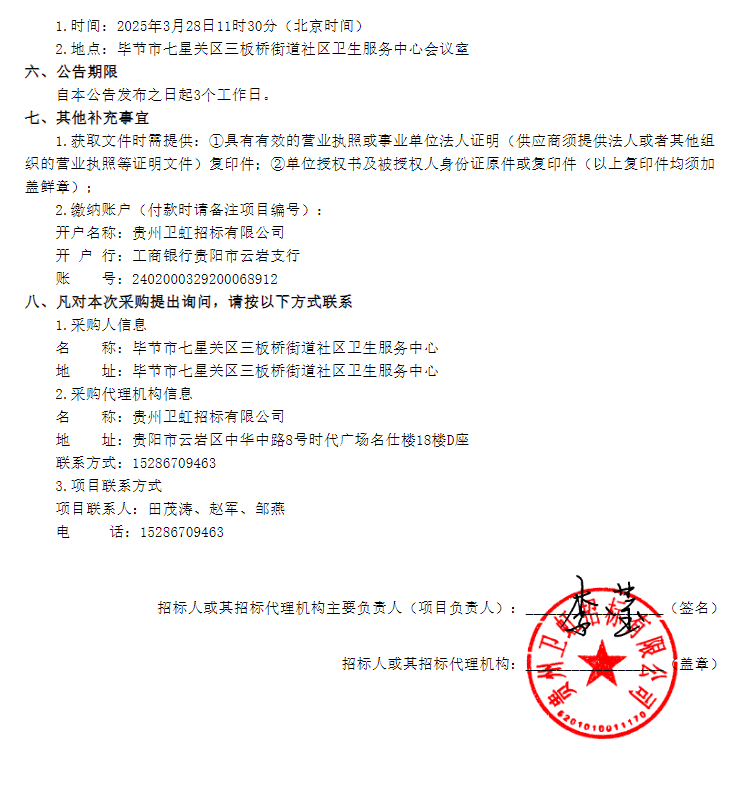 【毕节市七星关区三板桥街道社区卫生服务中心】贵州省毕节市七星关区三板桥街道社区卫生服务中心2025年试剂耗材及药品采购项目比选公告