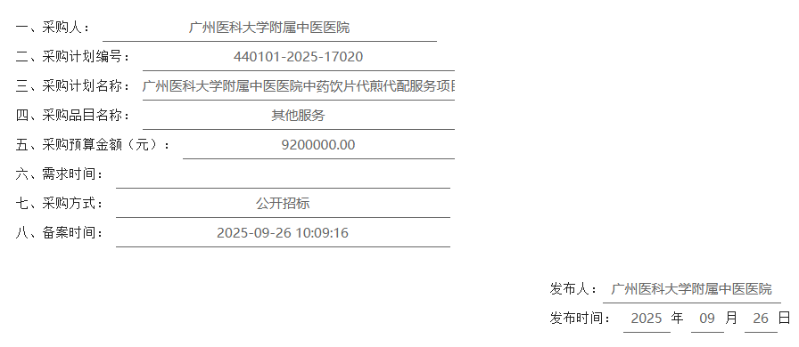 【广州医科大学附属中医医院】广东省广州医科大学附属中医医院中药饮片代煎代配服务项目
