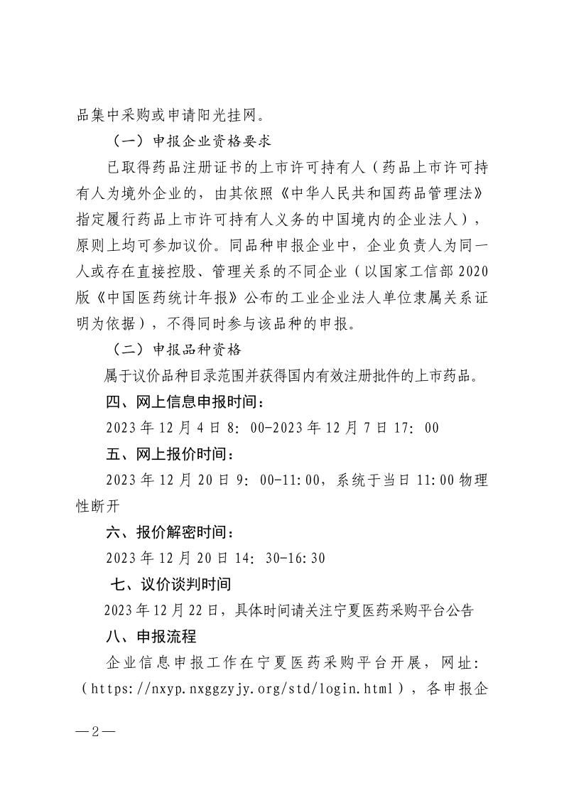 2.宁夏医药采购平台联盟议价产品申报系统将于2023年12月7日17:00关闭,届时将不再受理信息维护。