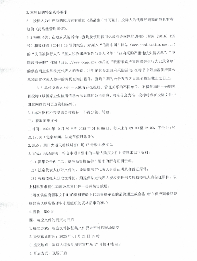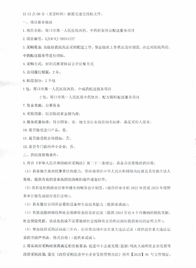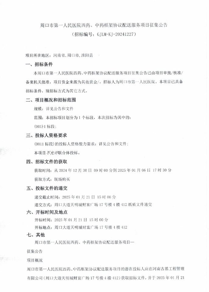 【周口市第一人民医院】河南省周口市第一人民医院西药、中药框架协议配送服务项目征集公告