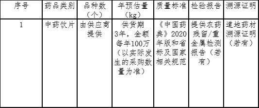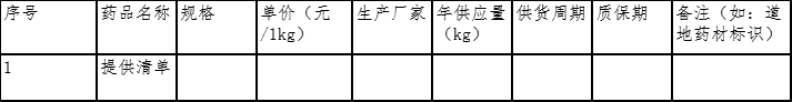 注:供应商报价品种应包含以上中药饮片品种数量并提供完整的报价,报价需包含运输配送费、税费等全部费用;