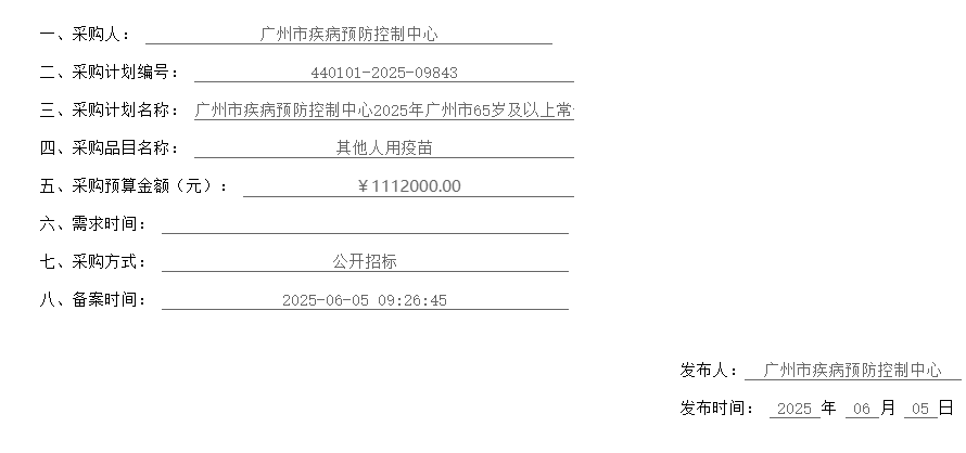 【广州市疾病预防控制中心】广东省广州市疾病预防控制中心2025年广州市65岁及以上常住老年人肺炎疫苗免费接种项目