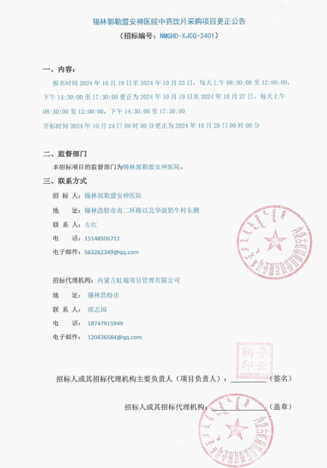 【锡林郭勒盟安神医院】内蒙古自治区锡林郭勒盟安神医院中药饮片采购项目更正公告