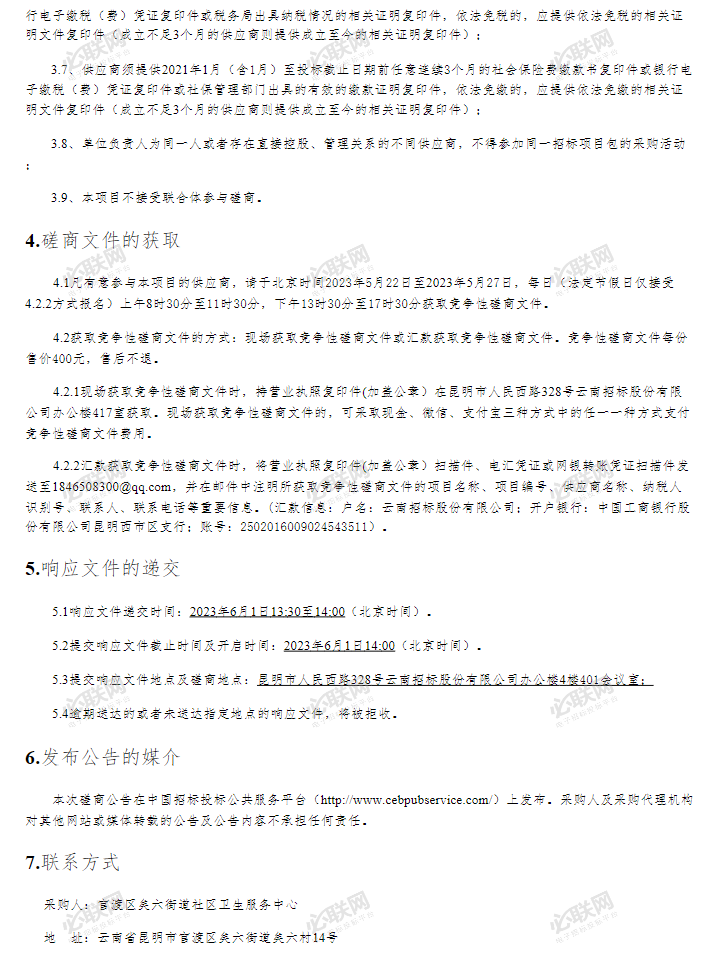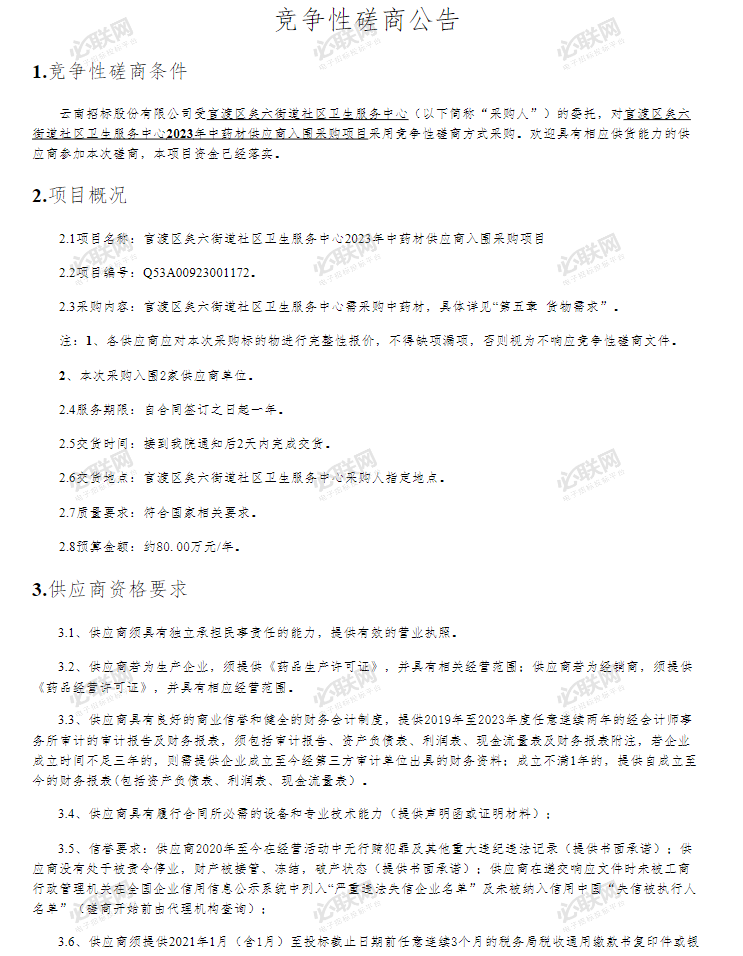 【昆明市官渡区矣六街道社区卫生服务中心】云南省昆明市官渡区矣六街道社区卫生服务中心2023年中药材供应商入围采购项目竞争性磋商公告