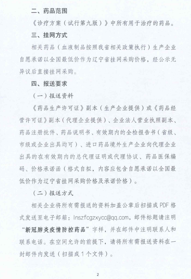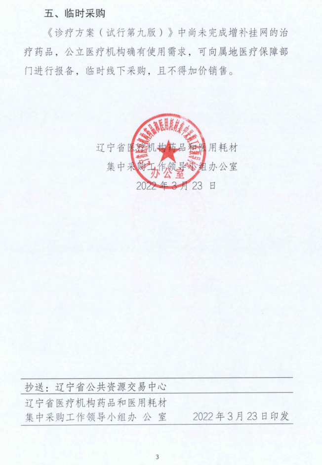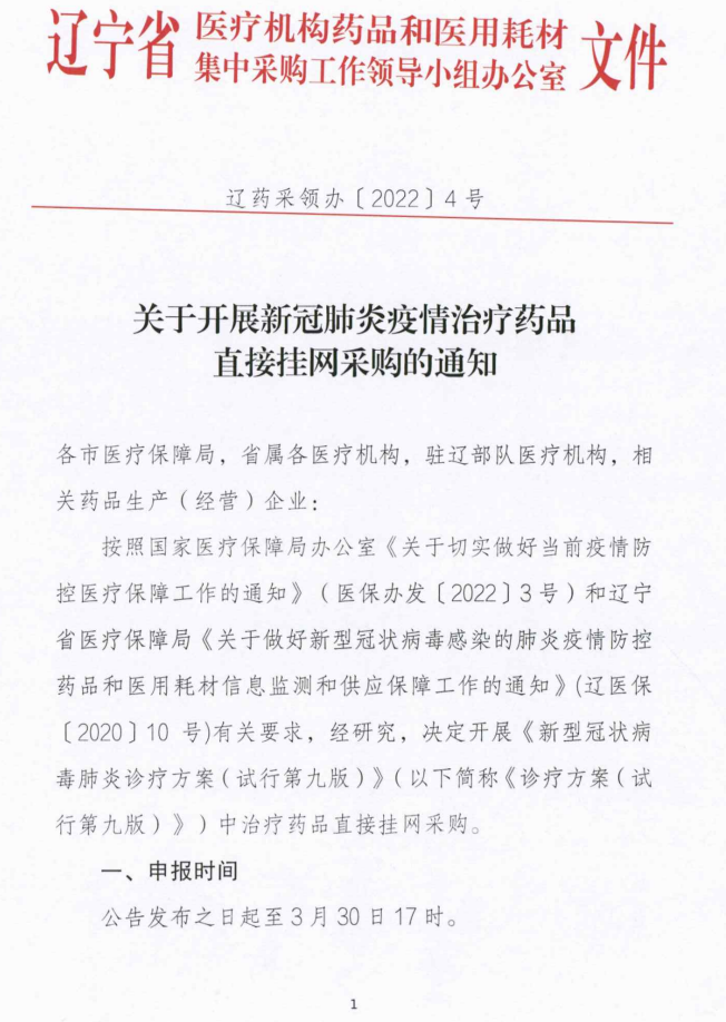 【辽宁】关于开展新冠肺炎疫情治疗药品直接挂网采购的通知