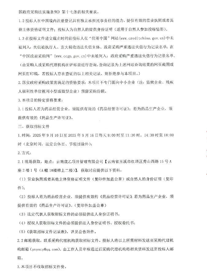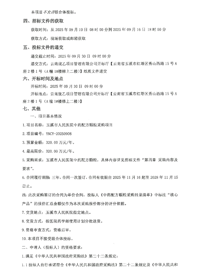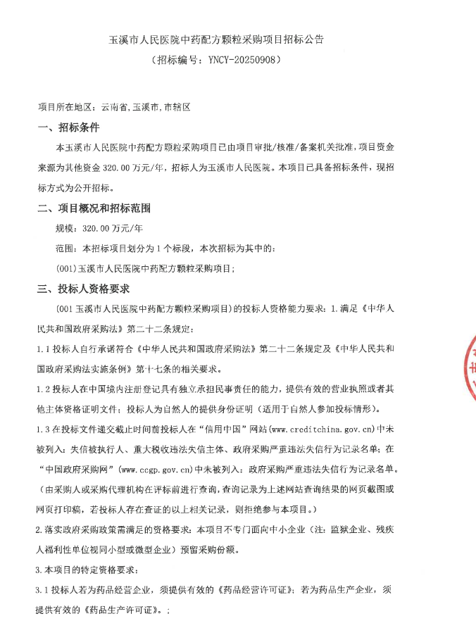 【玉溪市人民医院】云南省玉溪市人民医院中药配方颗粒采购项目招标公告(20250910)