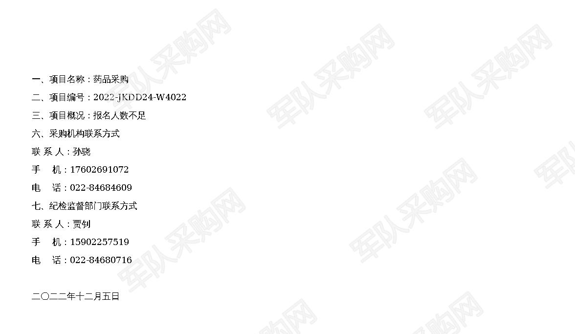 【军队采购】药品采购项目询价失败公告 (2022-JKDD24-W4022)
