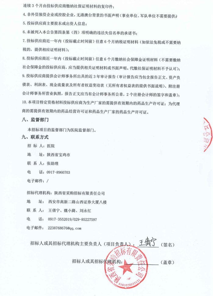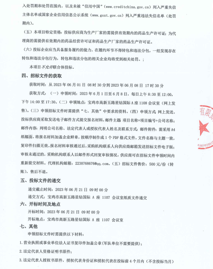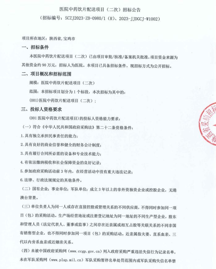【宝鸡市人民医院】陕西省宝鸡市医院中药饮片配送项目(二次)招标公告