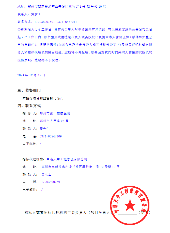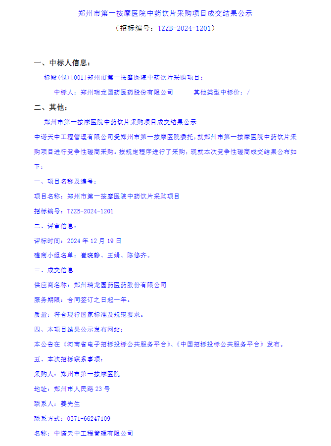 【郑州市第一按摩医院】河南省郑州市第一按摩医院中药饮片采购项目成交结果公示