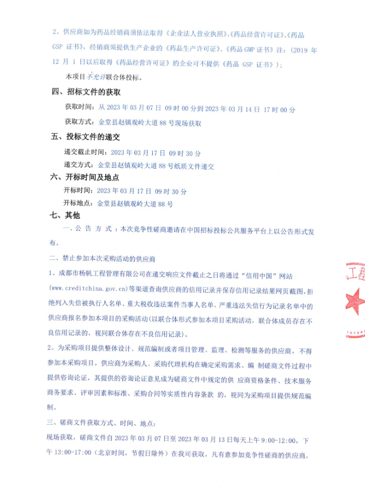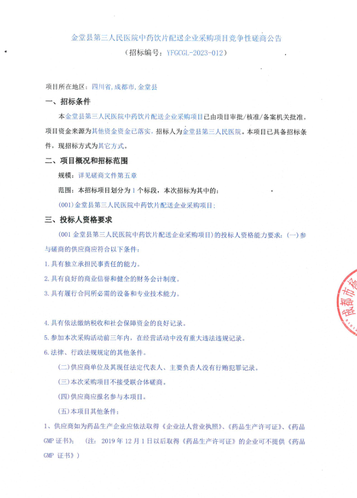 【成都市金堂县第三人民医院】四川省成都市金堂县第三人民医院中药饮片配送企业采购项目竞争性磋商公告