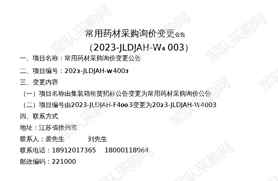 【军队采购】军队采购网常用药材采购询价变更公告(2023-JLDJAH-W4003)