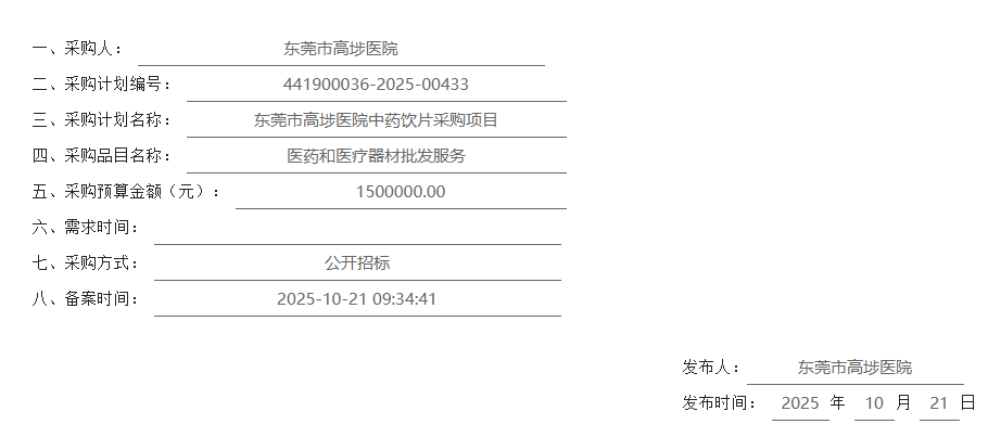 【东莞市高埗医院】广东省东莞市高埗医院中药饮片采购项目