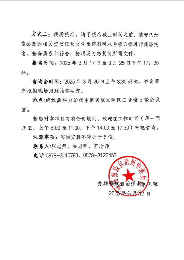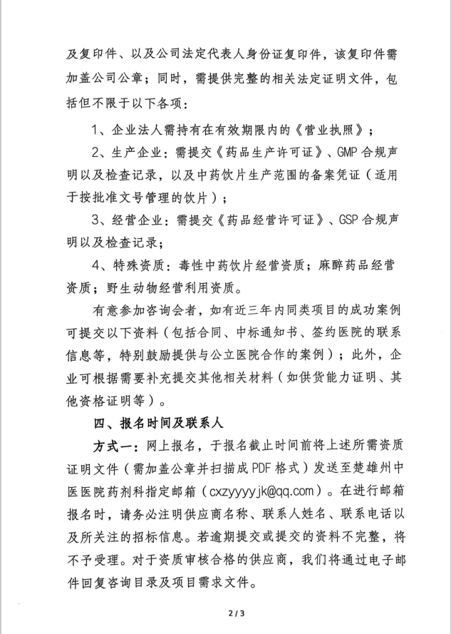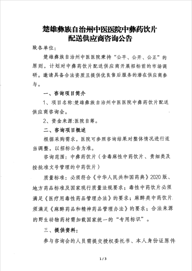 【楚雄州中医医院】云南省楚雄州中医医院中彝药饮片配送供应商咨询公告