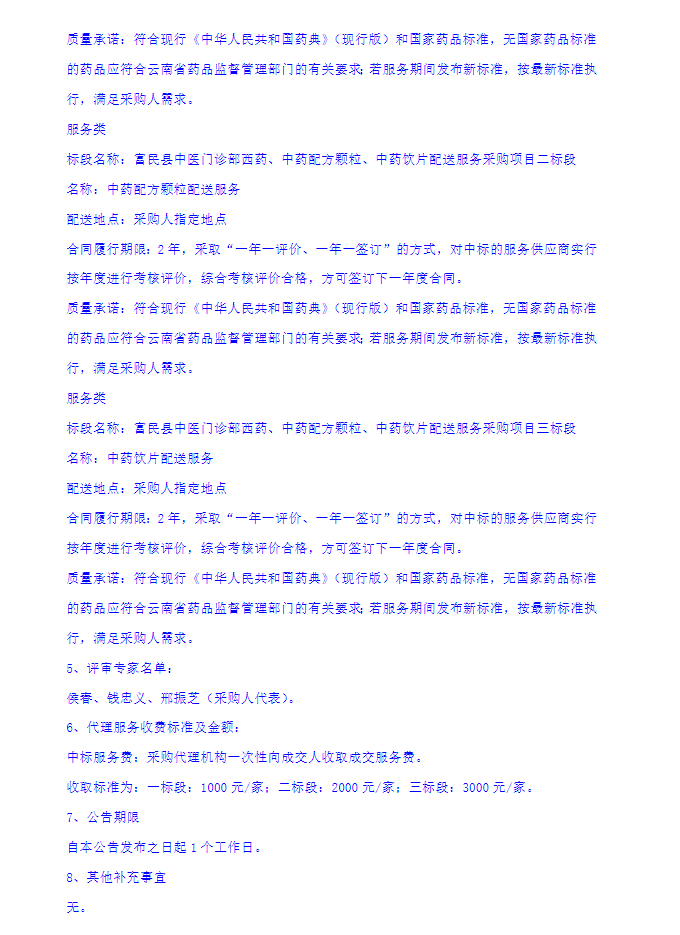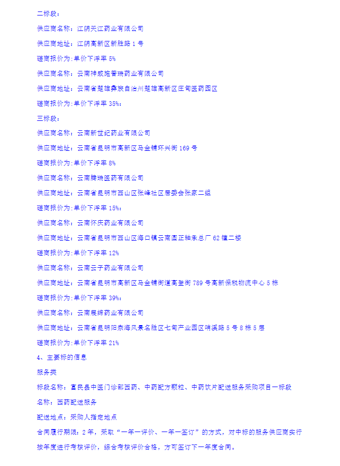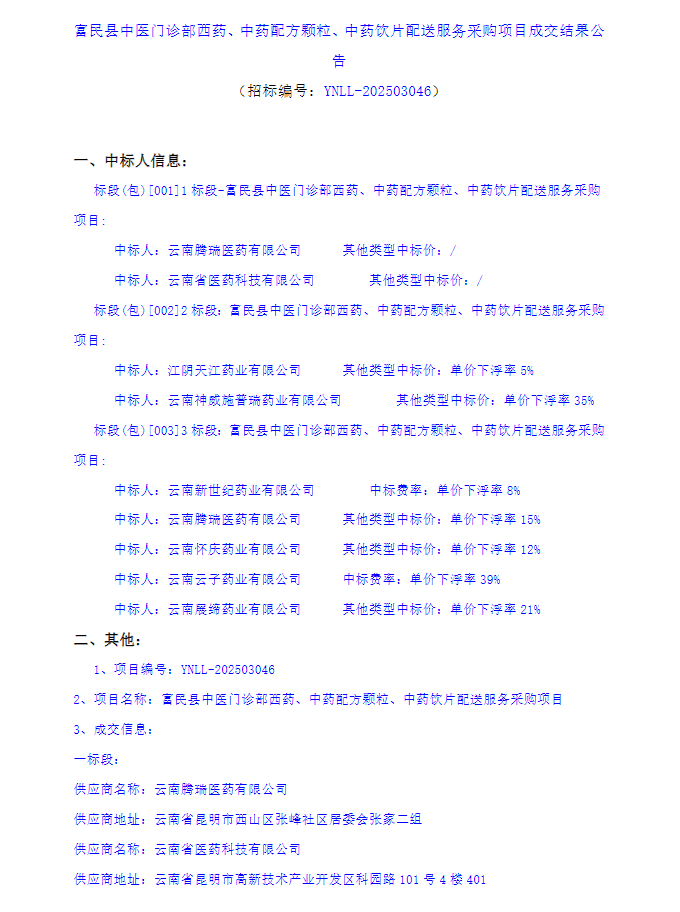 【昆明市富民县中医门诊部】云南省昆明市富民县中医门诊部西药、中药配方颗粒、中药饮片配送服务采购项目成交结果公告