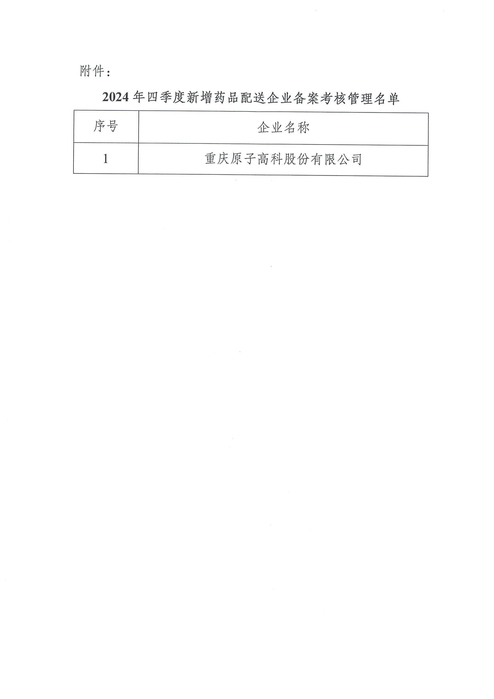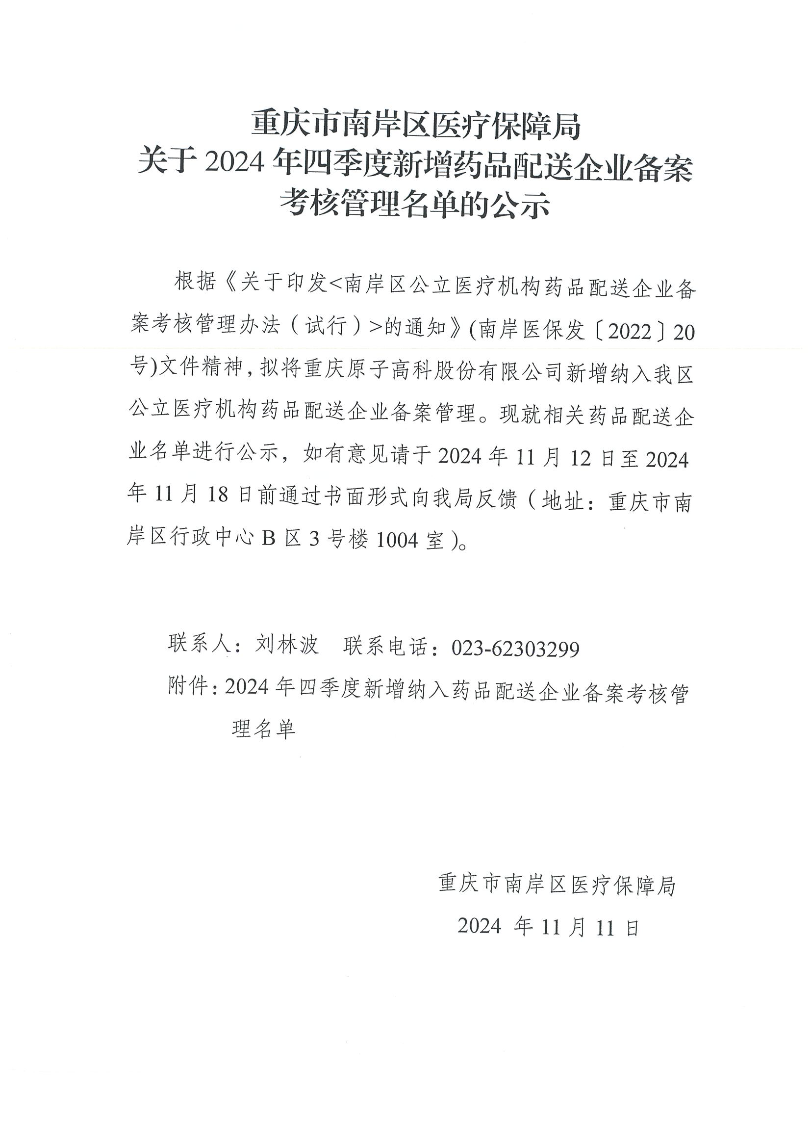 【重庆】重庆市南岸区医疗保障局关于2024年四季度新增药品配送企业备案考核管理名单的公示