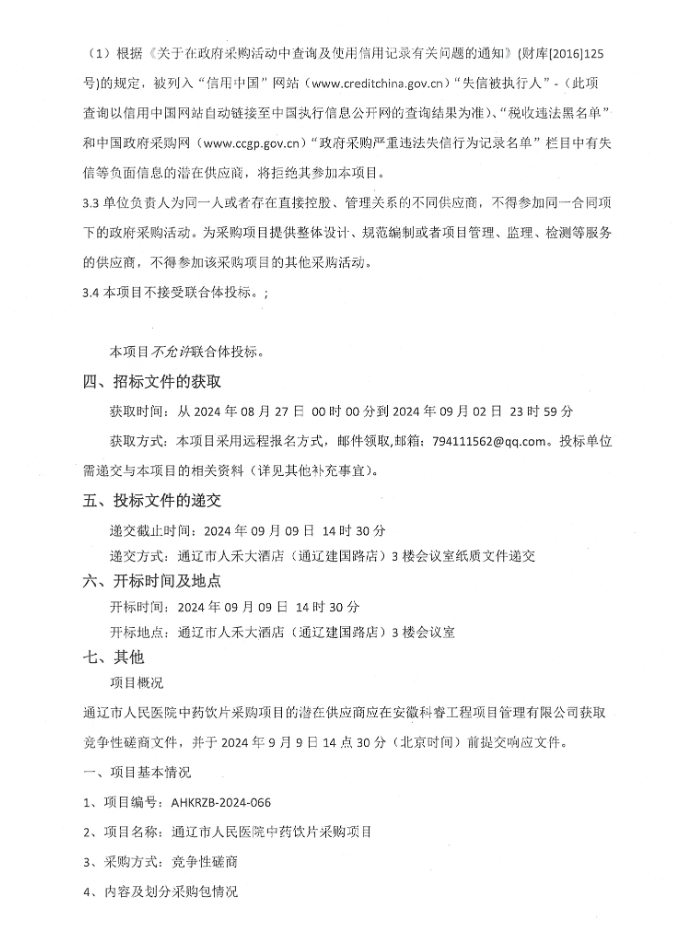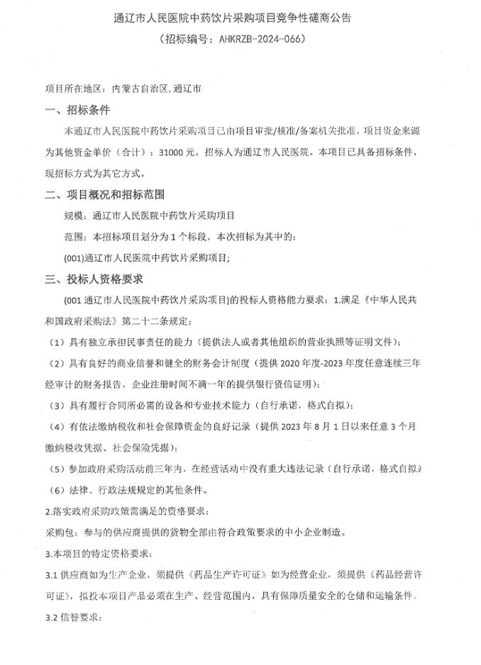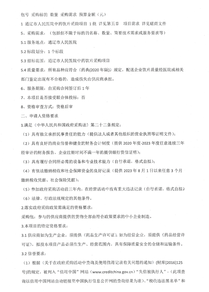 【通辽市人民医院】内蒙古自治区通辽市人民医院中药饮片采购项目竞争性磋商公告